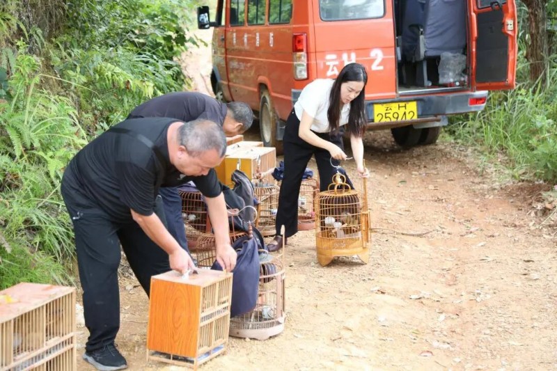 近日,文山壯族苗族自治州廣南縣林業(yè)和草原局在境內(nèi)森林植被優(yōu)良區(qū)域,將專項(xiàng)行動(dòng)中查獲的55只國家二級(jí)保護(hù)動(dòng)物畫眉鳥,及3只國家“三有”保護(hù)動(dòng)物中華鷓鴣(當(dāng)?shù)厮追Q“金嘎嘎”)集中放飛,讓這群“林中精靈”重返自然棲息地。