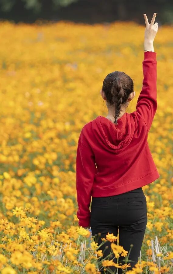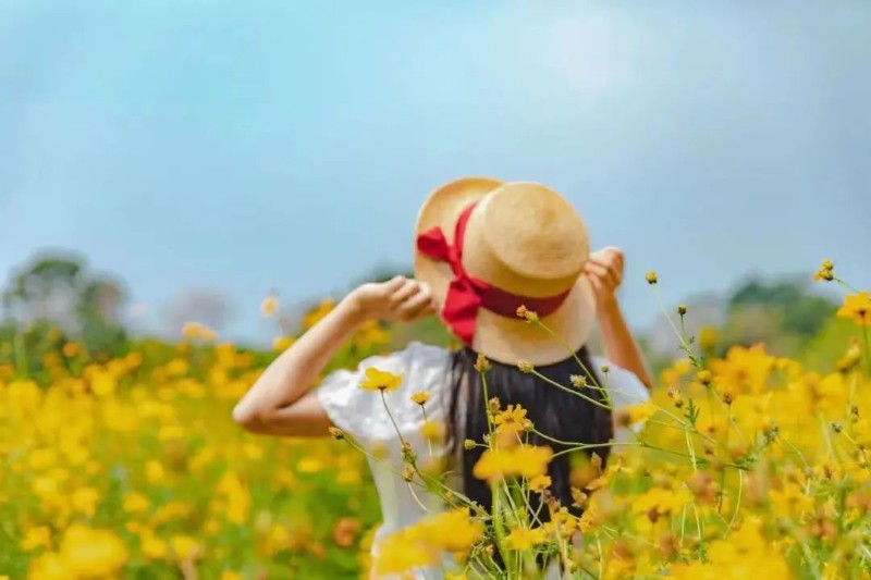 拍照技巧:穿淺色系衣服更出片,下午 4-5 點的陽光柔和,拍花海 廣州塔同框超美