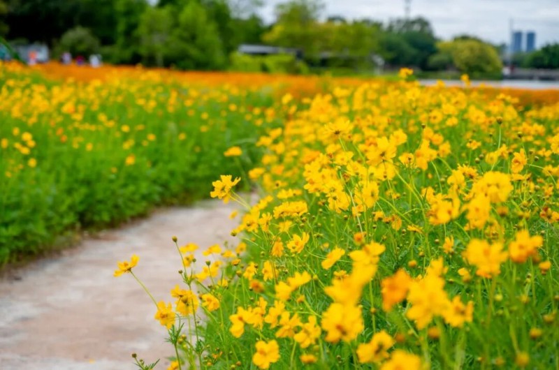 海珠湖南岸悄悄鍍上一層淺黃,硫華菊正蓄力綻放,金黃與橙紅即將鋪滿大地。