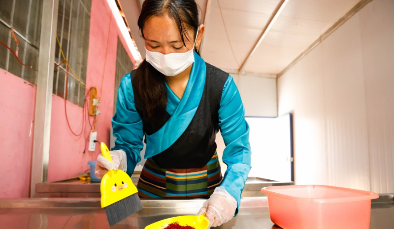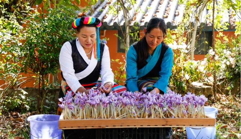 農(nóng)戶收集已經(jīng)烘干的藏紅花花絲 劉云 攝