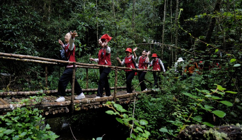 沿著蜿蜒的山路上行至天堂山,沿江村則是另一番熱鬧景象。這里憑借94.6%的森林覆蓋率成功打造出“自在漭水、徒步天堂山”的旅游品牌。