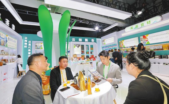 客商在云南展區(qū)進(jìn)行洽談。 本報(bào)記者 黃興能 攝