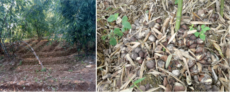案例二:文山壯族苗族自治州富寧縣板侖鎮(zhèn)板侖村和紅河哈尼族彝族自治州紅河縣迤薩鎮(zhèn)七星寨村,2023年9月開始反季紅托竹蓀種植15畝,2025年鮮品產(chǎn)量達(dá)每畝平均130千克,一級(jí)品率60%。以市場收購保底價(jià)每千克80元計(jì),每畝收益1.04萬元。勃氏甜龍竹竹筍產(chǎn)量平均每畝增加200千克,增收800元。實(shí)現(xiàn)“以林養(yǎng)菌、以菌養(yǎng)林”的綠色發(fā)展。