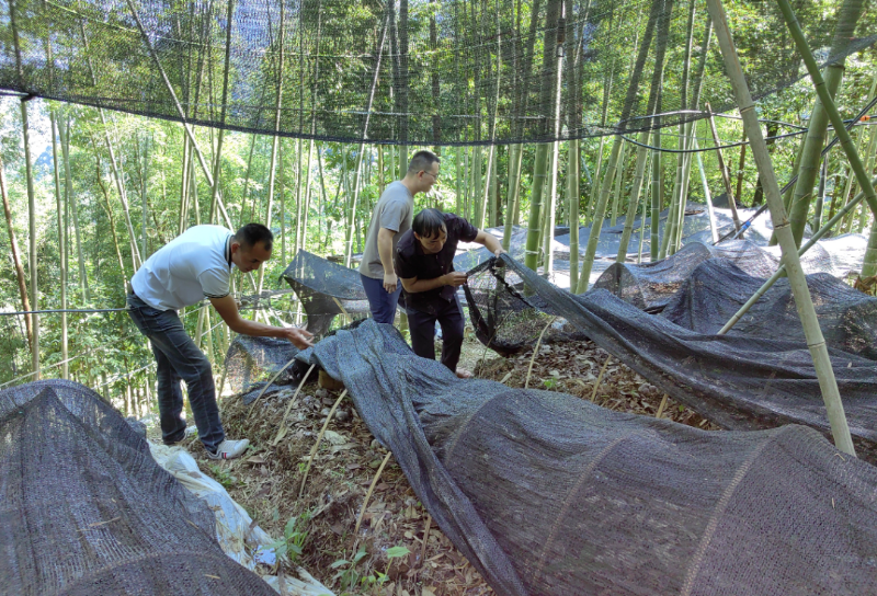 案例一:昭通市彝良縣牛街鎮(zhèn)水田村、威信扎西鎮(zhèn)玉京山村,2023年5月開始正季紅托竹蓀種植15畝,2025年鮮品產(chǎn)量達(dá)每畝平均160千克,一級(jí)品率70%。以市場收購保底價(jià)每千克60元計(jì),每畝收益9600元。示范基地的建設(shè)輻射帶動(dòng)發(fā)展40余戶,培訓(xùn)林農(nóng)550人次。竹蓀種植增加了土壤有機(jī)質(zhì)含量,改善土壤營養(yǎng)狀況,方竹筍產(chǎn)量每畝平均增加60千克,增收480元。示范基地的成功實(shí)踐,為山區(qū)產(chǎn)業(yè)發(fā)展提供了可借鑒的路徑。