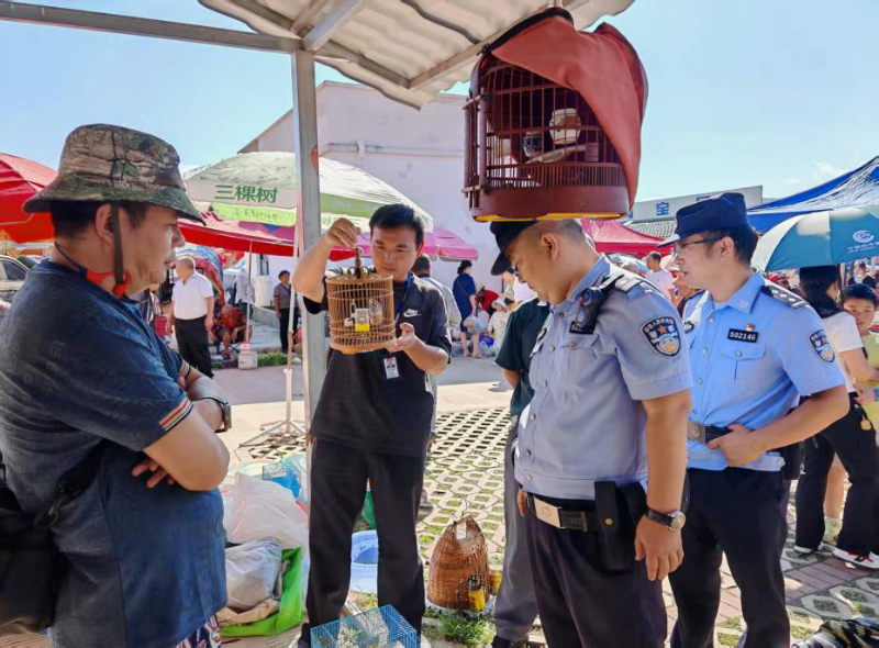 實(shí)地檢查中,對現(xiàn)場發(fā)現(xiàn)集市銷售捕獸夾的行為給予政策宣傳并交當(dāng)?shù)厥袌霰O(jiān)管和林草部門處理;對經(jīng)營人工繁育鸚鵡的商戶給予政策宣傳指導(dǎo),交當(dāng)?shù)乜h級林草部門按《人工繁育鸚鵡活動管理的有關(guān)規(guī)定》依法依規(guī)辦理。