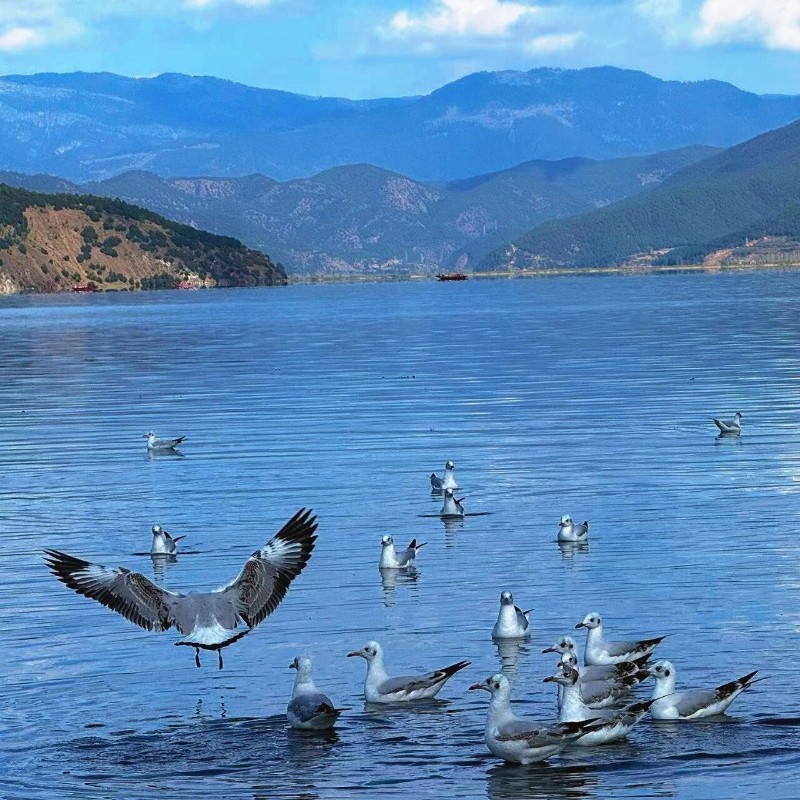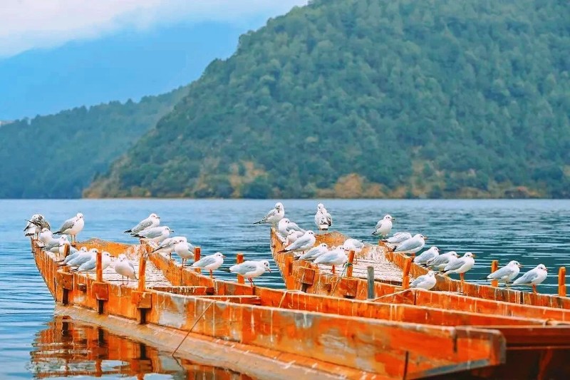 瀘沽湖的澄澈湖水,不僅倒映著藍天白云,更滋養(yǎng)著豐富的水生生物。得天獨厚的生態(tài)優(yōu)勢,讓瀘沽湖成為候鳥越冬的“理想家園”。每年秋冬季節(jié),上萬只紅嘴鷗便會展開漫長的遷徙之旅,跨越萬水千山,最終選擇停駐在瀘沽湖畔。對它們而言,這里不僅有能果腹的食物,更有安全的棲息環(huán)境,是名副其實的“安全越冬驛站”。