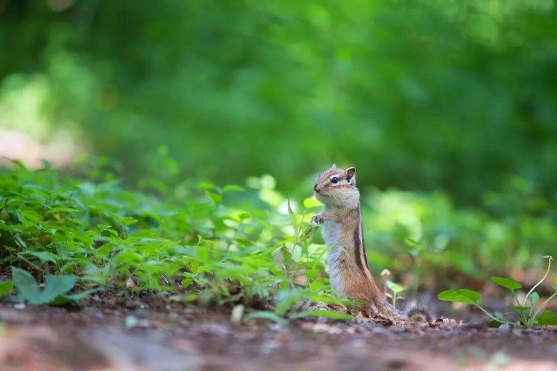 花鼠介于樹(shù)棲與地棲之間,時(shí)而在樹(shù)上采集堅(jiān)果,時(shí)而在地面撿拾食物,還能經(jīng)常捕食小型昆蟲,食性比另外兩種松鼠更雜。在國(guó)家植物園,花鼠屬于罕見(jiàn)的稀罕物,偶爾會(huì)看到它們認(rèn)真地將食物塞滿頰囊,然后鼓著腮幫子心滿意足地跑開(kāi),模樣十分可愛(ài)。每到冬季,花鼠便會(huì)到地下洞穴中進(jìn)行冬眠。