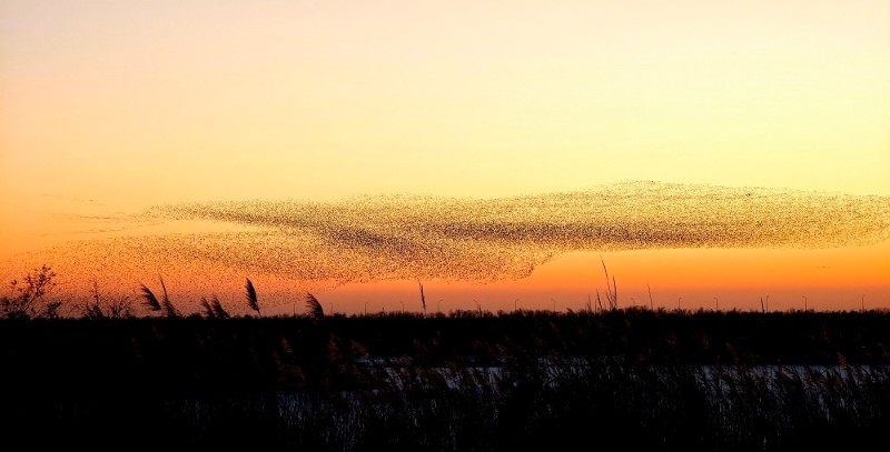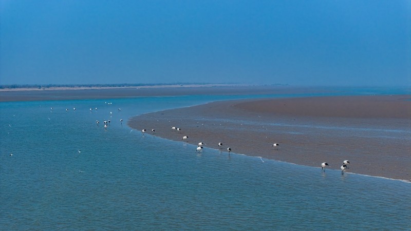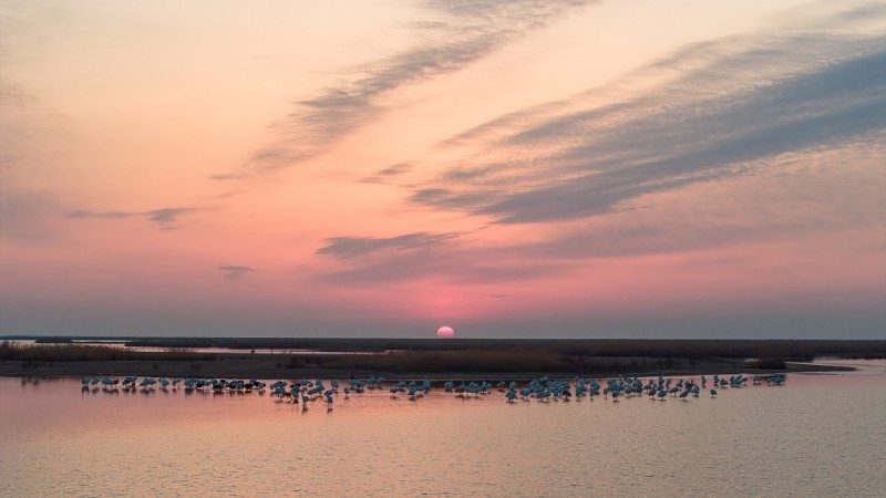圖為在山東黃河三角洲國家級自然保護區(qū)拍攝的鳥景