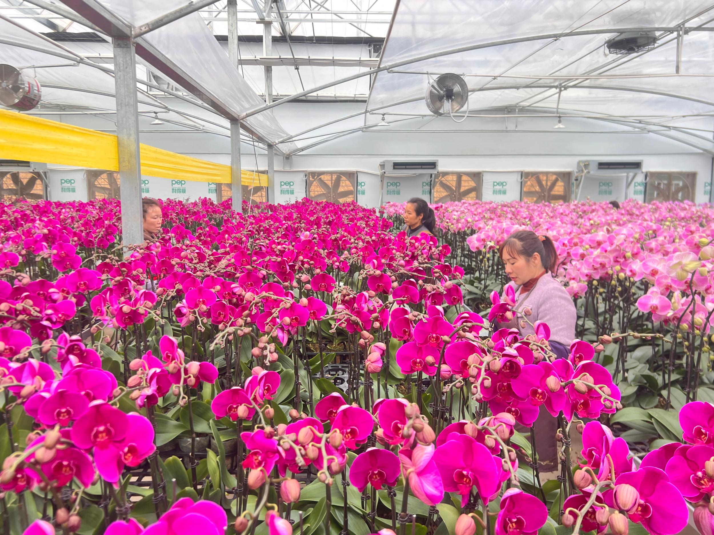 走進硯山智卉園藝有限公司的蝴蝶蘭種植基地,溫室大棚內(nèi)生機盎然。白色“星月”、粉色“薇珊”、玫紅“大辣椒”等39個品種的蝴蝶蘭,在整齊的種植架上競相綻放,形似振翅的蝴蝶,將大棚裝點成絢麗的“花卉秘境”。這家依托蝴蝶蘭產(chǎn)業(yè)發(fā)展的企業(yè),不僅在國際市場占據(jù)重要份額,更成為當(dāng)?shù)剜l(xiāng)村振興的“助推器”。