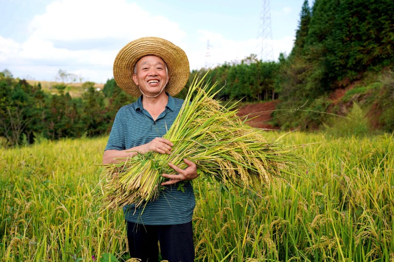 “我們今年種在旱地里的稻子,稻穗金黃、顆粒飽滿,看著就高興?!闭诿χ崭畹竟鹊耐醢l(fā)達(dá)臉上洋溢著豐收的喜悅。