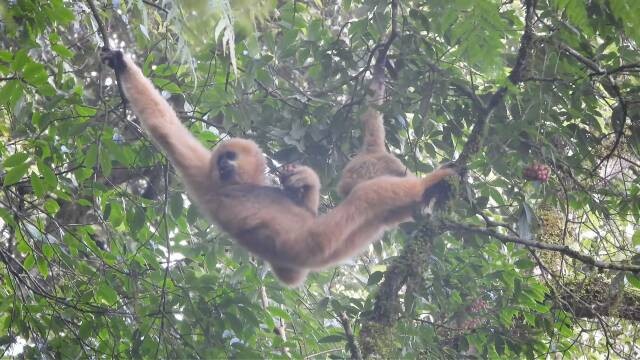 據(jù)專(zhuān)家介紹,這一罕見(jiàn)捕食行為不僅印證了西黑冠長(zhǎng)臂猿能根據(jù)環(huán)境變化靈活調(diào)整食物來(lái)源,也從側(cè)面反映出南澗片區(qū)棲息地生態(tài)系統(tǒng)完整性的顯著提升。最新調(diào)查數(shù)據(jù)顯示,目前,中國(guó)境內(nèi)西黑冠長(zhǎng)臂猿共有374群,數(shù)量約1800只;其中,南澗片區(qū)猿群已由2009年的1群2只,增加至目前的3群16只。