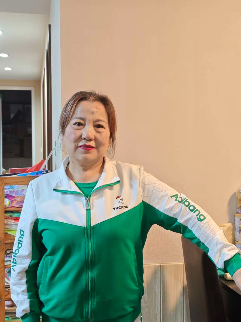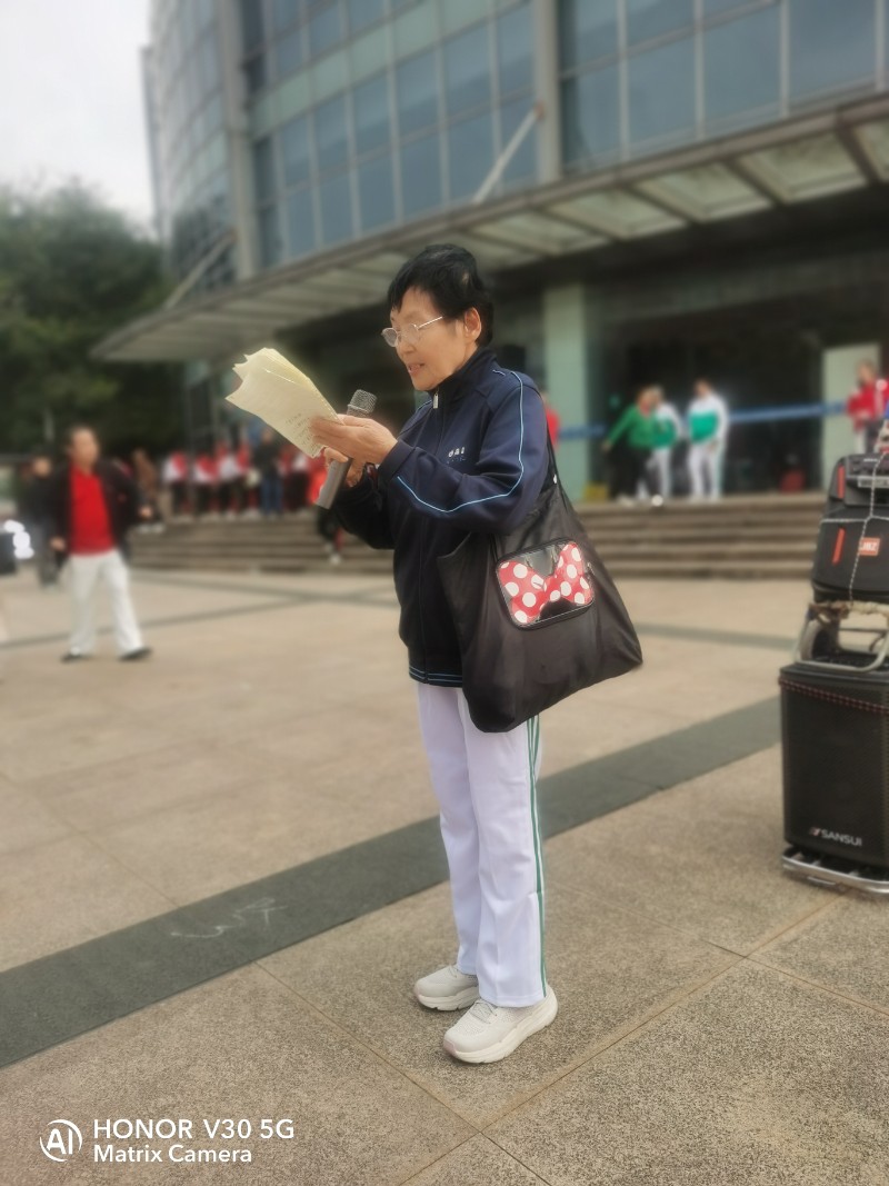 大家好!我叫譚毅貞,我是2024年春節(jié)過后加入江橋晨曦拍手舞隊的。