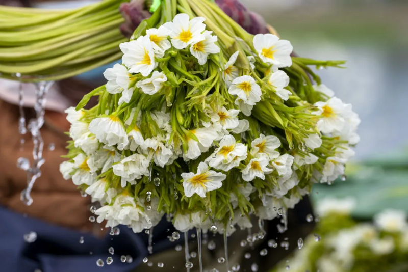 早上9點(diǎn),走進(jìn)大理白族自治州洱源縣右所鎮(zhèn)松曲村成片海菜種植基地,水面泛起粼粼波光,星星點(diǎn)點(diǎn)的海菜花隨水波輕輕搖曳?!昂2嘶ㄅ屡K,只有清澈見(jiàn)底的湖水才能留住它?!辈贿h(yuǎn)處的水面上,松曲村三江源水產(chǎn)品種植專業(yè)合作社的主播早育茂正向手機(jī)另一端的網(wǎng)友們介紹著海菜花。在早育茂的記憶中,以前村里家家戶戶都種植大蒜,自家也不例外。這個(gè)出了名的“大蒜之鄉(xiāng)”,高峰時(shí)期種植面積曾超過(guò)10萬(wàn)畝。近年來(lái),村民們卻放棄了大蒜種植,轉(zhuǎn)而種起了海菜。