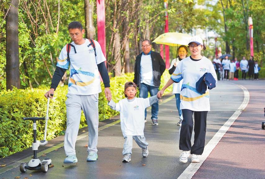 9時(shí),健步走活動(dòng)開(kāi)啟。在健身教練帶領(lǐng)下,大家認(rèn)真地做起熱身運(yùn)動(dòng)。一聲發(fā)令槍響后,參加活動(dòng)的745名健步走愛(ài)好者分為成人AB組和親子AB組開(kāi)始健步走?;顒?dòng)中,大家精神抖擻、昂首闊步,沿途欣賞著美景,呼吸著“天然氧吧”的新鮮空氣,享受著健步走帶來(lái)的激情,傳遞健康活力。此外,活動(dòng)親子組還特別設(shè)置4公里迷你健步走路線(xiàn),配備自然科普講解員,帶孩子認(rèn)識(shí)多樣性植物、鳥(niǎo)類(lèi)。