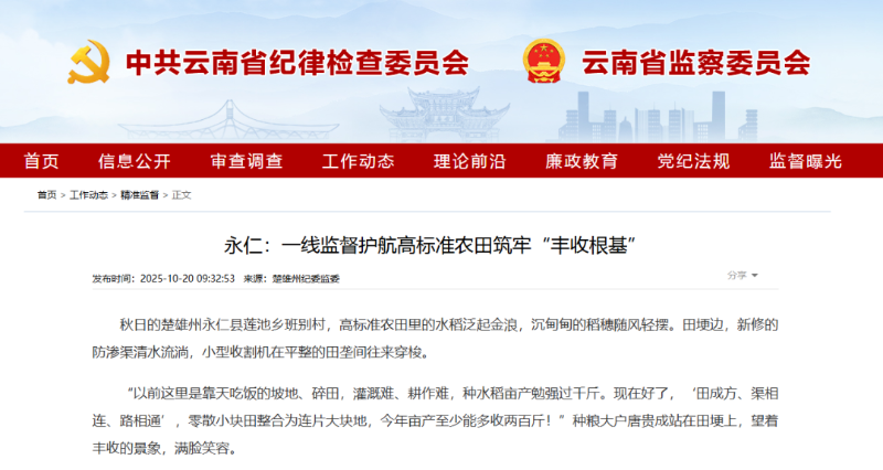 如今,在永仁大地的田野上,高標準農田如棋盤般鋪展。在監(jiān)督護航下,全縣已建成高標準農田19.62萬畝,有效破解了山區(qū)坡地灌溉難、耕作難的問題,糧食產能穩(wěn)步提升。